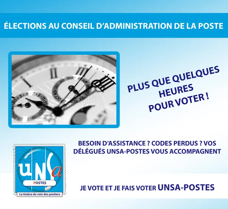 🚨 Élections au Conseil d’Administration de La Poste: Plus que quelques heures pour voter et faire voter UNSA Postes 🩵